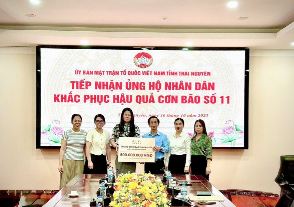 In response to the severe damage caused by Typhoon No. 11 in the northern provinces, on the morning of October 16, 2025, KITA Group donated VND 500 million to the Vietnam Fatherland Front Committee of Thai Nguyen Province to support local residents in recovering from the aftermath of the disaster.