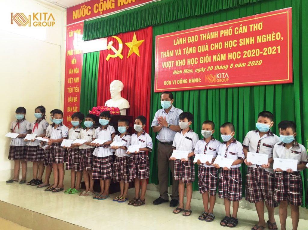 On August 20, KITA Group, together with leaders of Can Tho City, visited and presented gifts to underprivileged students who have overcome difficulties and achieved good academic results in the 2020–2021 school year in Dinh Mon Commune, Thoi Lai District.