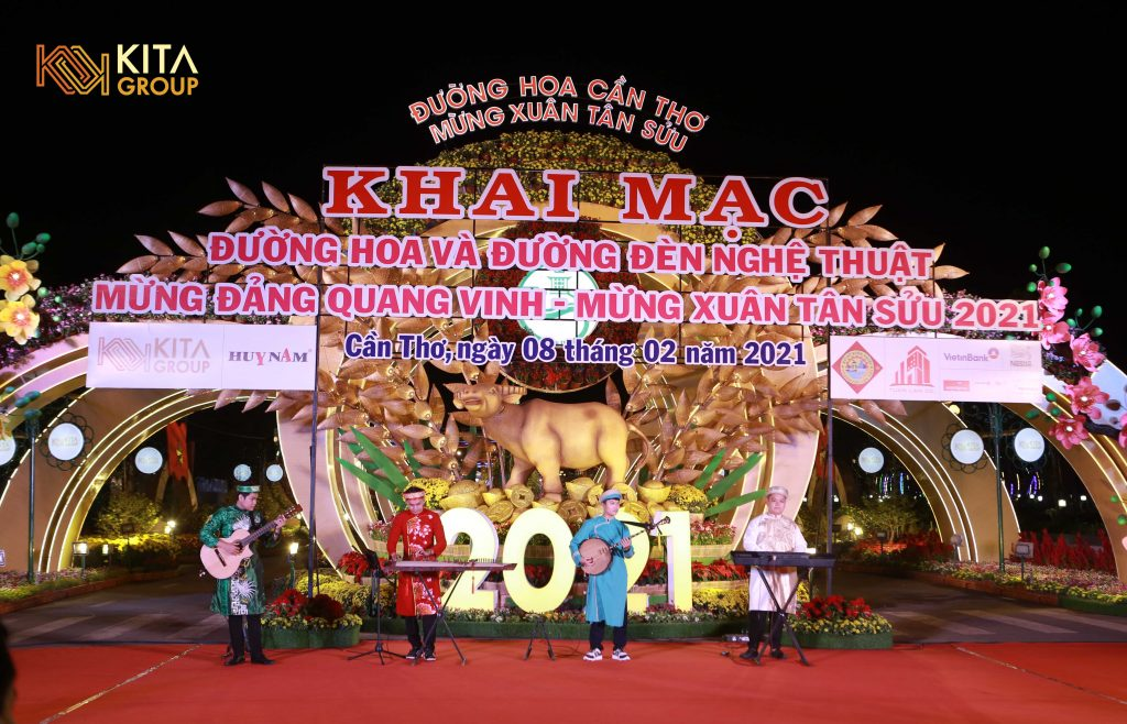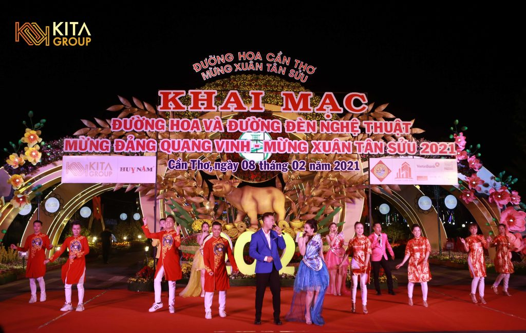 On the evening of February 8 (the 27th day of the Lunar New Year), KITA Group, in coordination with the Can Tho Department of Culture, Sports and Tourism, held the opening ceremony of the Art Flower Street themed “Celebrating the Glorious Party – Welcoming the Spring of Tan Suu 2021”.